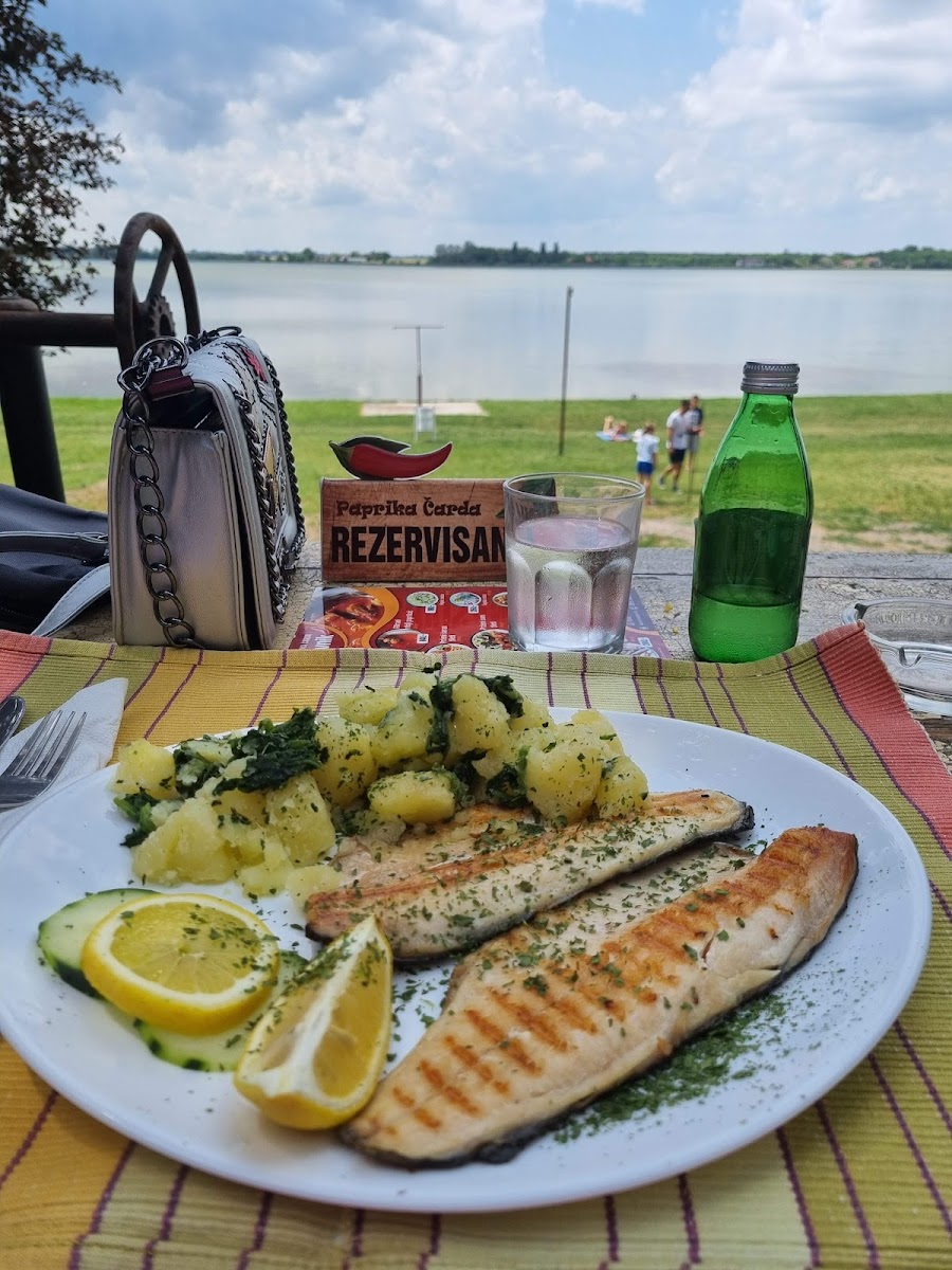 Very cute place and has magical homey atmosphere, with a very nice view to the lake, it’s like a family business and the lady cooking and serving was so kind, we didn’t have Serbian currency so she accepted euros (you can pay cash only) so service was good, we tried 3 different fish options and we paid 25 euros only, fish tasted amazing and the sardines were heavenly crunchy and fresh